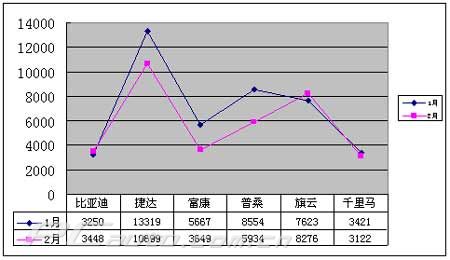 雅紳特將于3月16日正式上市,根據北京現代徐和誼的說法,雅紳特是小排量解禁政策后推出的一款新車。雅紳特要做小排量車的標桿,今年計劃銷售7萬臺。由此分析,雅紳特的月銷量要在10000臺以上,如此的宏偉目標,沒有合理的定價,銷售目標很難完成。 10萬元以下熱點車型銷售情況 第五,雅紳特月銷萬臺的計劃并非空穴來風,關鍵看定價策略。根據上圖可能看出,10萬以下的汽車市場銷量很大,如果雅紳特的定價合理,完全可以爭得不小的市場份額。 雅紳特1.6L排量的車型主要考慮現產品捷達、比亞迪F3,即將全面上市的新產品標致206、華晨駿捷。定在10萬元左右是一個較為合理的水平,前提是伊蘭特的價格不能松動,改款伊蘭特需迅速推向市場。 |