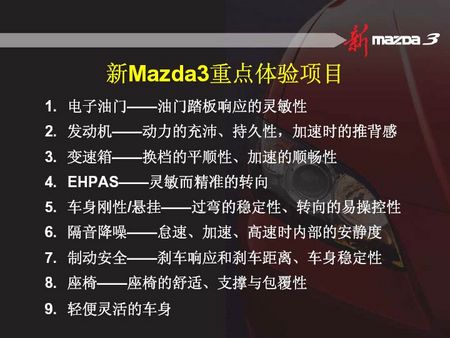 高安全性是新Mazda3的一項重要品質。 以下介紹的是新Mazda3在工藝方面的高品質,以及駕駛時應重點體驗的項目。