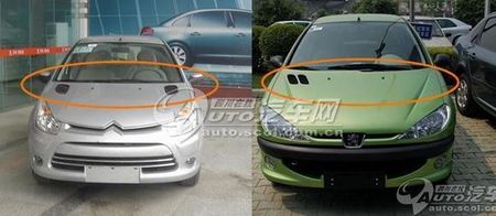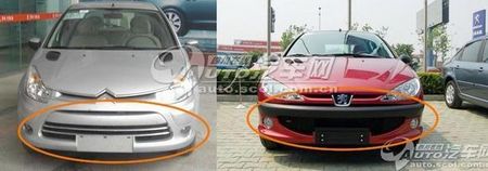 在前臉方面,206的引擎蓋上只有右邊有一個進氣口,而C2則是左右兩邊各有一個進氣口