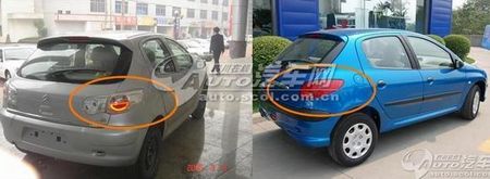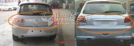 尾燈造型改變最大,206采用的是紅色一體尾燈,而C2則采用了透明的水晶組合尾燈
