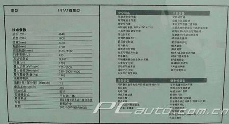 尊馳、駿捷1.8T車型現身 技術參數曝光 |