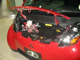 動力篇: 大家感到意外的可能是“i”所采用的驅動方式!癷”所采用的是中后置后驅的驅動形式。在行李廂的下面,就正是“i”的發動機所在地了!癷”采用了三菱全新的雙頂凸輪軸3氣缸12氣閥MIVEC渦輪增壓發動機(Mitsubishi Innovative Valve timing Electronic Control system)。在6000轉的時候能夠發出64匹的最大馬力,最大扭力為9.6kg-m/3000,拉動這輛790千克的小車簡直易如反掌。為了保持車輛在行駛的過程中保持較低的噪音水平,發動機上是有一塊鐵板嚴密的隔開發動機艙和車廂,在鐵板的上面,還有一塊厚度達到5-6cm的隔音綿作隔音之用。事實也證明這樣的設計方式,確實使得“i”在行駛的過程中保持同級車型的噪音水平。雖然像一輛游樂場的玩具車,但是力量卻是最為強勁的一輛“玩具車”了。動力是夠了,但是身高達到16米,使得在急彎中出現較大的傾側以及推頭現象。 打開車頭蓋板,里面是裝置了空調系統、ABS剎車系統等,發動機已經移至車的后部。從前倉看來,各種系統裝置的分布較為零亂,與“i”的可愛不太對應。 香港的一些規模較大的車行會將一些較為特別的車型放在大街上吸引路人的注意力,在編者的拍攝過程中就有不少的香港市民進入該陳列室了解該車的情況,看來“i”的吸引力還是不小的。門外白色的“i”。 特別鳴謝:環宇汽車 電話:00852-2411 9511 地址:香港新界荃灣青山道374-380號 |