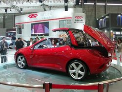 國產跑車之二:奇瑞M14 由意大利賓尼法瑞納(Pininfarina)公司設計的奇瑞M14,外觀非常漂亮,而且是一款硬頂折疊跑車,頗有幾分標致307CC的風采。動力方面,M14將會采用奇瑞ACTECO發動機系列中,最大功率達到144KW的2.0T自主發動機。據介紹,M14會在2007年首先在美國上市,價格將參照現代酷派,奇瑞銷售副總秦力洪甚至對媒體表示:“M14的技術是強于現代酷派的,無論的發動機還是可收縮的硬頂,所以價格高于現代酷派也是正常的。”“之所以首先在美國上市,是想提高奇瑞的品牌影響力,如果M14在美國取得了成功,我想中國的消費者也會認同奇瑞,改變奇瑞在消費者心目中的地位。”筆者并不懷疑奇瑞M14的競爭力,只是希望ACTECO發動機的生產受阻不會延誤M14的發展時機。