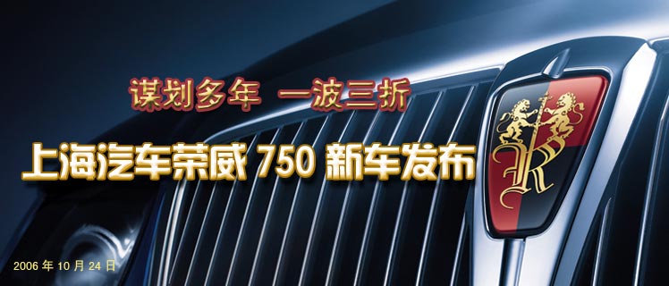 10月24日,上海汽車集團股份有限公司首款中高檔自主品牌產品,榮威(Roewe)750隆重亮相。 榮威(Roewe)750是國內第一輛廣泛使用歐洲高檔車技術的中高級轎車。第一次在國內將全新歐