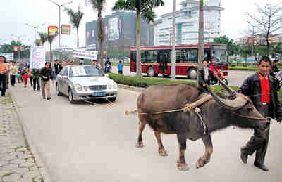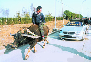 編者按:2001年武漢車主“牛拉大奔”事件曾經鬧得沸沸揚揚,最終鬧到車主要把“大奔”一砸了事。時隔幾年,南寧又出了“牛拉大奔”的新聞,讓人慨嘆,奔馳車難道就只能讓牛拉?難道維權只能靠“牛拉”才能引起重視?