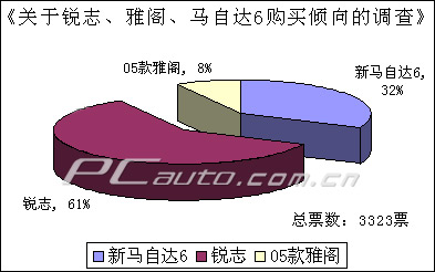 金九月末,國內(nèi)車市先后上演了,福克斯、比亞迪F3、新馬自達(dá)6上市的三初連臺(tái)好戲,讓消費(fèi)者目不暇接,眼花繚亂。這其中新馬自達(dá)6以改進(jìn)型發(fā)動(dòng)機(jī)、全新暗色調(diào)運(yùn)動(dòng)風(fēng)格內(nèi)飾,標(biāo)以“加料不加價(jià)”的口號(hào),北京、上海、珠海三地同時(shí)上市,聲勢浩大。其目的大家心知肚明,新馬6就是沖著銳志來的。下表為新馬自達(dá)6上市當(dāng)天,PCauto導(dǎo)購組發(fā)起了一則消費(fèi)調(diào)查項(xiàng)目,結(jié)果顯示:銳志先聲奪人,在消費(fèi)者心中的地位加固,而新馬6加配再戰(zhàn)“江湖”也有些力不從心。我們今天討論的主角雅閣,支持率比預(yù)期的低了許多,歸咎原因不外乎:再流行的款式也有過時(shí)的一天,再搶手的車型也不能按步不前。