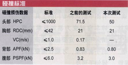 大約兩個小時后數(shù)字出來了。據(jù)工廠技術(shù)人員介紹,雅閣之前就已進行過標準的側(cè)面碰撞測試,我們將兩次側(cè)碰的數(shù)字歸在一張表上,很容易發(fā)現(xiàn),兩側(cè)測試的成績非常接近,結(jié)果:不僅完全符合法規(guī),而且有些項目假人受力僅是標準的1/20。
