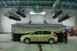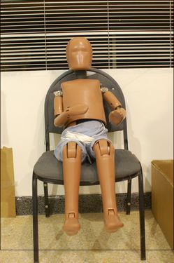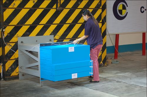 除了被測車輛本身,假人也是至關(guān)重要的一部分。因為它身上有很多傳感器和數(shù)據(jù)采集裝置,是得出數(shù)據(jù)核心。據(jù)記者在現(xiàn)場從試驗場的工程師那里了解到,每一次試驗對假人都有非常嚴格的要求。首先假人在參加試驗前應放在恒溫的室內(nèi)至少5個小時(溫度在20-22攝氏度,濕度在10%~70%),以保證每一次試驗中假人外部的硅膠表面硬度保持一致。為了保證它的表面溫度,試驗場還采取了一些其他的措施。比如車輛同時需要放置在恒溫的環(huán)境中,碰撞區(qū)域的燈光使用無頻閃燈光系統(tǒng),保證溫度不會過高。