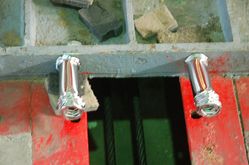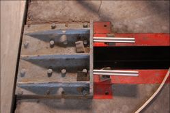 地面的索道用以牽引被測試車輛,這段直線加速路段全長120米,好似航空母艦上的蒸汽彈射裝置。車輛達到預定速度后,在距離碰撞壁7米的地方脫離牽引索道。在這里安裝有脫鉤機構(gòu),用以脫離牽引車子的繩索和套鉤。下圖為索軌停止的地方,兩根鋼管在為牽引裝置停止做出緩沖后發(fā)生褶皺變形。從圖中可以看出褶皺非常規(guī)則,最大限度的吸收撞擊時的能量。這與車頭的縱梁設計有異曲同工之妙。(未完待續(xù))
