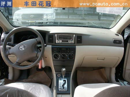 軸距達到了2.6米的花冠,在同級車型中空間已算佳績,所以駕駛員腿部的空間應該算是相當充足的,車內寬度也不差,乘坐空間令人滿意。高度達到了近1.5米高,車內凈高度也有1230毫米,但高出的空間并未留給乘員,這是由于它的座椅高度設計考慮到人體工程學原理,所以離地高度提升到了570毫米,這樣司機在上下車時會更方便省力。除了車廂為數不少的儲物空間外,后排座椅還可以4/6分拆放倒將車廂與后備廂空間貫通,這樣一來,只要放倒前后排座椅,花冠甚至可以裝載長度超過3米的細長物件。坐進車內,發現這款GLX-i電子導航版是以仿桃木搭配淺內飾為主色調,風格比較老成,給人不厚實的感覺,而且我始終對于內飾大面積使用仿桃木的做法持保留態度。就我個人而言,標志307的金屬內飾更合我的胃口。