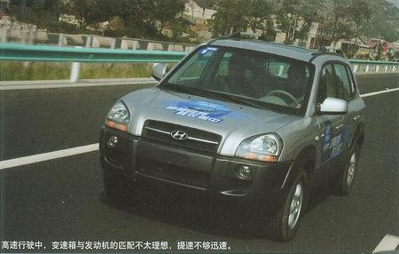 途勝系列的型號比較豐富,—北京現代將引進包括2.0升與2.7升兩個排量的多種車型,此次試駕的是其頂配車型2.7V6自動擋途勝,它也是將在12月首先亮相的車型。在同一級別的車型中,2.7排量應該不算小,129千瓦的最大功率也足夠用,但說到動力性,途勝的表現卻讓人略感失望。在自動擋模式下起步,油門對踏板的反應不夠靈敏,變速箱反應略顯遲滯,大腳轟油時轉速上升速度不夠,加速感比較模糊。時速80公里左右轉速上升至3500轉,此時感覺動力還比較足,持續加速性比較好,不過隨著速度的上升,4擋自動變速箱與發動機的配合就顯得有些不夠理想,總有種有勁用不出來的感覺,速度上升比較平緩。時速160公里時轉速穩定在4500轉以內,此時幾乎感覺不到什么加速感,想想如果能換成5擋自動變速箱,情況應該有所改觀。此時如果再想提起些速度,可以換到手動擋模式強制降為3擋,發動機轉速隨著音量的升高迅速飆升至5500轉,車速也會逐漸逼近最高車速180公里/時,不過這樣做會對變速箱造成一定損傷。