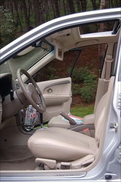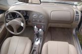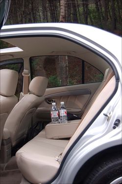藍瑟的內部空間表現(xiàn)出上代日系車的結構特點——頭部空間沒有得到足夠重視。尤其是后排,筆者1.78米的身高坐在后座上,頭部幾乎碰到車頂。不過可以看出,在車身結構無法改變的情況下,這款藍瑟車的設計師還是把舒適性放到了很重要的一個位置。我所試駕的這款藍瑟,全車座椅均由透氣皮質包裹,表面略有些滑,但比較柔軟。正副駕駛座位不能對腰部進行調解,但座椅本身能夠為駕乘者提供一個比較好的支撐。駕駛員座位采用6方向手動調節(jié),高度調節(jié)時略顯吃力,駕駛者如果是女孩子可能頗要費一番功夫?坷瓧U操縱的座椅靠背在調解過程中可以明顯的感覺到每一個角度的卡槽,與德系車比較慣用的旋鈕式靠背操作方式比起來,拉桿式操作更加方便,但在角度的選擇上要有所犧牲,尋找一個合適的姿勢需要一定的時間。此外,前排座椅的頭枕除了高度可變以外還能前后移動,緊急狀態(tài)下可有效保護駕乘人員的頸椎不受損傷。