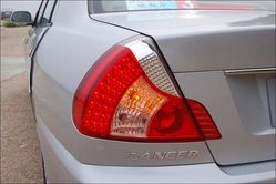 最后解釋一下這款車的安全裝備。藍瑟全系裝備了四輪碟剎,14寸的輪轂以及成本限制阻礙了它使用更大的剎車盤,不過目前這套剎車系統(tǒng)足以應付4G18發(fā)動機所帶來的牽引力。藍瑟的ABS采用了BOSCH的產品,不過沒有EBD這樣的輔助系統(tǒng),在一些特殊路面狀況下可能表現(xiàn)要差一些。而智能型雙SRS氣囊這次也裝在全部四款車上。