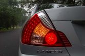 話題回到藍瑟的外觀上,雖然成員艙的線條改變不大,但外觀依舊被引入了許多新的設計元素。尤其是前臉,因為它與原版的8代Lancer實在太過相似了。無論是鷹眼晶鉆頭燈,還是富有三菱家族特點的前散熱格柵,都與國外的新款車型保持著“同步”。相比之下,尾燈則更多的顯出了中國版“Lancer”的獨特之處。尾燈的整體形狀與過去區(qū)別不大,但內部各種車燈的組合形式發(fā)生了變化。其中以圓形后霧燈為中心,轉向燈、倒車燈、LED剎車燈成發(fā)散狀順序排列,原來位于后車牌左右的銀色反光板這次也被挪在了尾燈組當中。這樣的改變使得其從尾部看來較過去更具活力,但它同樣沒能表現(xiàn)出原版車那種簡約而又經典的感覺。與克隆的前臉相比,這多少讓人有點遺憾。