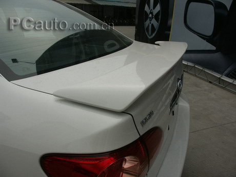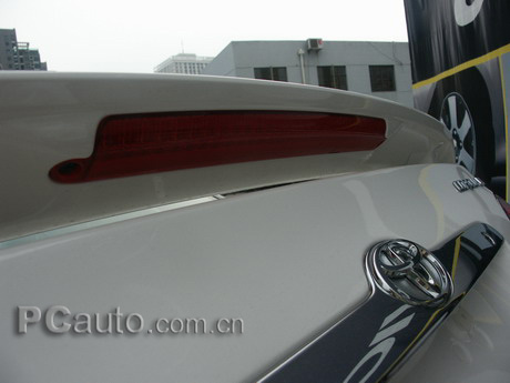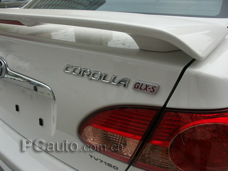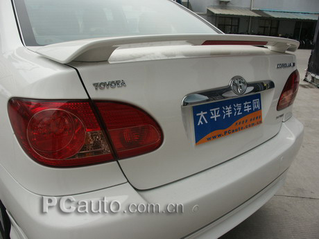 運動版花冠車尾的變化主要集中在尾翼方面。增配了擾流板之后除了外型上的變化外,原本在后玻璃窗內的高位剎車燈被移到了擾流板上。擾流板可以令車身在高速馳騁時的平穩順暢,也令整個外觀更富動感。