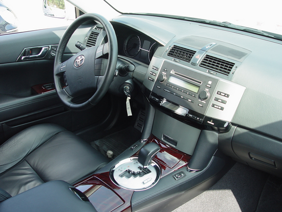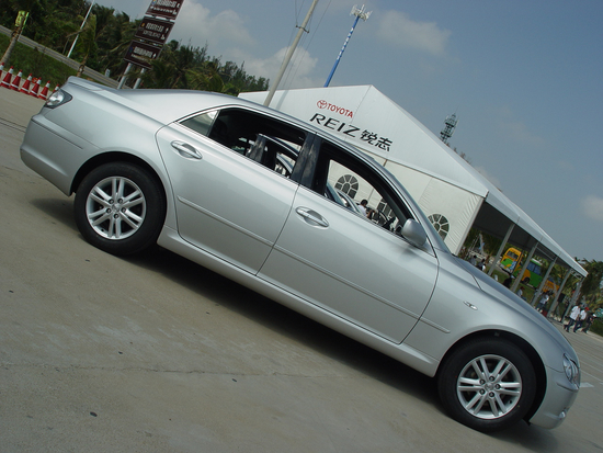 和前幾代同門兄弟Mark Ⅱ相比,銳志一改Mark Ⅱ獨有的直線感,而擁有新皇冠動感的外觀造型,圓潤而張顯大氣。整個車身長為4735mm, 寬1775mm ,高1450mm。整個車身看起來車身腰線渾厚有力,從厚實的尾部一直延伸到前大燈。前臉讓人印象深刻,在不經意間給人一點親切感,也覺得似曾相識。仔細一思索,頓覺恍然,原來和豐田皇冠的前臉相似,上下透露出一種年輕而穩重的相貌。由于2850mm的長軸距以及特意縮短的車身,車頭可能因為前艙的空間太小而顯得有些厚重。缺少了點Mark Ⅱ第七代或者第八代那種雷厲的直線感和硬氣,多少有點柔的氣派。相比而言,我個人卻喜歡那種硬朗的設計,這種風格可以追溯到20世紀60或者70年代的經典主義風格中去。