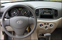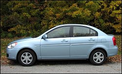 我提到價值了嗎? Accent GLS包括了已有的設備,6氣囊、8路線駕駛座、空調、電加熱前座和鏡子、帶電子制動器力的防抱死制動系統、15英寸鋁制輪圈、6喇叭AM/FM/CD/MP3音頻系統。對于一款如此經濟的小車來說,它的裝備是很充分的。特別是考慮到10年期的動力系保證以及廣受贊譽的質量聲譽時;甚至豐田汽車都要俯首稱臣。現在我猜測你認為我只是一味地在吹捧新款Accent。它確實是在如今的經濟狀況,特別是昂貴的燃料成本狀況下理想的車型,是適合大多數有兩個孩子的家庭所駕駛的汽車。內部空間寬城、行李箱寬大、乘坐舒適且非常安靜。那些希望給駕駛增添幾分刺激的人也不會感到失望,我可以證明這一點,我沿著多倫多以北通往西海岸的筆直公路一直前行,一直把Accent停放在一個廢棄的停車場附近。對它不滿的很少,贊譽的卻很多。這就是它的價值所在。