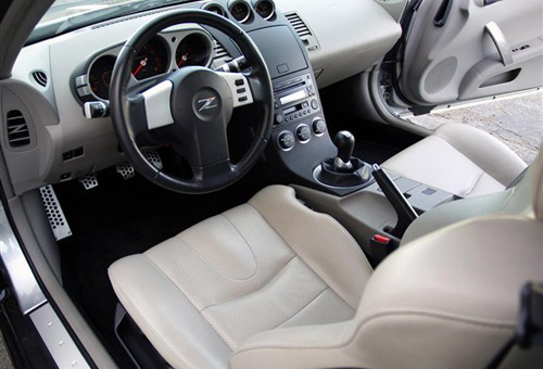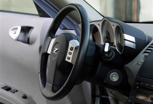 350Z的操控臺布置比較新穎,轉向盤后面的三個圓盤式儀表,與中控臺上方的三個顯示溫度、機油量和電量的小圓盤式儀表相互應,形成以圓形為主的獨特運動風格。