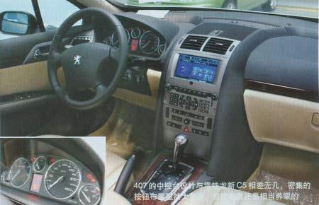 407的內(nèi)飾設(shè)計(jì)就不像前臉設(shè)計(jì)那么簡(jiǎn)單前衛(wèi)了,主要原因在于其布局復(fù)雜的中控臺(tái)。可能是與雪鐵龍同屬一家的原故,407的中控臺(tái)設(shè)計(jì)竟然與雪鐵龍C5幾乎一模一樣,眾多的按鈕雖然布置得比較緊湊整齊,但是密集之下,肯定會(huì)影響到駕駛者的注意力所以中控臺(tái)的設(shè)計(jì)沒有什么亮點(diǎn)。但407的儀表板設(shè)計(jì)卻比較吸引記者的注意力,通過間隔布置的5個(gè)大小不同的圓形鍍鉻儀表盤,看起來(lái)非常順眼。