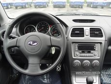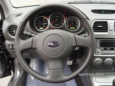 WRX的方向盤采用較為小的三幅式方向盤,是意大利MOMO的產品,真皮透氣設計,手感較好,再來到我們的儀表盤部分,和一般車輛不同的是,位于中間的是儀表指示的發動機的轉速,也許就賽車手來講的當時的速度標識并不是那么重要,在乎駕駛者自身的判斷,相反準確把握發動機的轉速,有效利用好其性能更為重要。這里還有的是顯示屏還有電子顯示車外溫度和行車公里時及油耗。