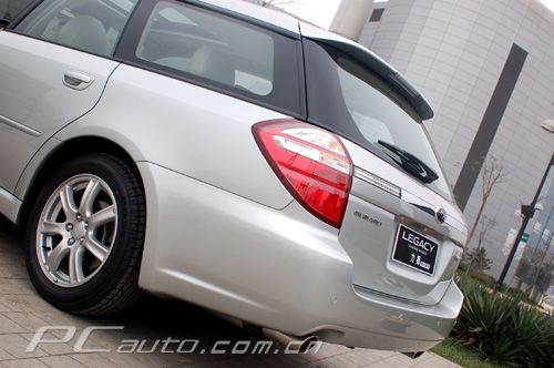 如果你對斯巴魯不是很熟悉,那么遮上尾部的“Legacy”字樣,可能會讓你很難辨清它到底是力獅還是傲虎。五邊形的尾燈包住車尾的兩角,轉(zhuǎn)向燈、倒車燈和被分離出來的霧燈以白色點綴,顯得很飽滿。帶有車內(nèi)距離顯示器的四探頭倒車雷達也是力獅Wagon的標配。在為期數(shù)天的使用中,筆者明顯感覺到,對于車長達到4720mm的力獅Wagon來說,倒車雷達是十分必要的。分置在左右的兩個排氣管在美觀上加了分,車子也因此看來更具動感。