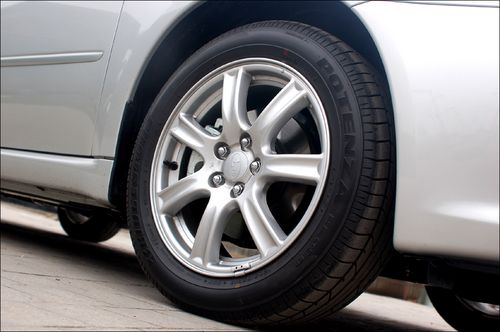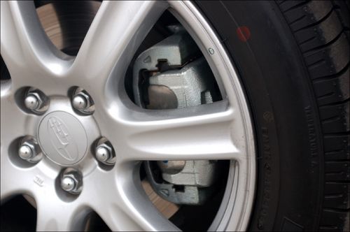 裝在16寸6幅新型輪轂后面的,是前2活塞后1活塞的卡鉗,加前270mm(通風(fēng))后250mm剎車盤。力獅Wagon的剎車系統(tǒng)保持著斯巴魯?shù)囊回烇L(fēng)格,那就是在踏板的力道上前半程相對比較軟,中后段逐漸開始發(fā)力,在正常使用中感覺這套剎車系統(tǒng)很讓人放心。雖然制動(dòng)效果尚可,但原廠剎車片相對較軟,在制動(dòng)過程中會(huì)產(chǎn)生大量的黑色粉末,不但對于車胎、輪轂的清潔很不利,更重要的會(huì)導(dǎo)致較快的磨損。