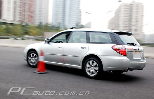 力獅2.0R裝備的EJ204型發(fā)動(dòng)機(jī),在功率上可與2.5L級(jí)別的發(fā)動(dòng)機(jī)較量,但相對而言扭矩較弱;重心的后移還是對操控產(chǎn)生了細(xì)微的影響,加上那普力斯通的RE030公路胎,令車尾在穿樁中有些飄忽。