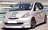 這部東莞威馳外觀改裝十分成功,遠(yuǎn)遠(yuǎn)看去,有一種機(jī)器人的氣勢(shì),儼然一副停下車來立刻變成變形金剛的樣子,但車嘎然停下,只有車主從駕駛座下來,向筆者迎來,并配合技術(shù)人員談起這部車的改裝。這套大包圍包括前后杠、兩裙邊、高尾翼、開孔發(fā)動(dòng)機(jī)蓋、窗邊晴雨擋和碳纖維材料制作的前大燈裝飾板……