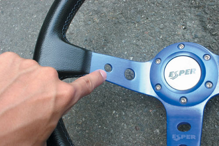 按鈕裝置的位置在方向盤左右盤幅原有的孔洞上,如此可節省鉆孔的麻煩