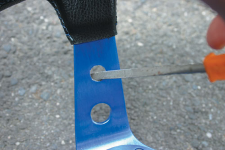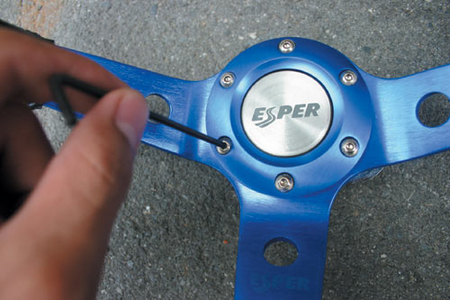 由于按鈕直徑略大于方向盤上的孔徑,因此需利用銼刀將孔徑磨大一點,如此按鈕才裝的進去