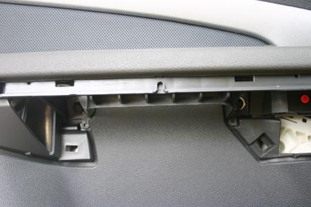 不論是前門板或后門板,拆卸時都必須由下往上,而安裝時則是由上往下。門飾板在窗溝的地方有一溝槽,要確實嵌入車身才行,否則可是會造成組裝不良,衍生異音。