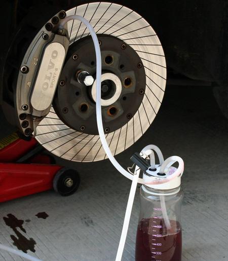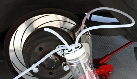 在這里,我推薦置換的方法,既排出舊剎車液時,加入新剎車液并保持儲液罐中有一定液位,不要見底。這樣,系統中將不會產生氣泡。由于負壓吸引使舊剎車液排出較快,新剎車液也不會與之產生混合。