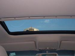 圖片可點(diǎn)擊放大 四、天窗: 天窗也是新款加裝的,遮陽板手動(dòng)往后拉,可以露出天窗玻璃。遮陽板做工很好,與車內(nèi)飾渾然一體。天窗的打開有兩種方式,一種是內(nèi)藏平開,可隨意控制天窗的開度;另一種是后部上翹,可隨意控制上翹角度。用兩種方式打開或關(guān)閉天窗聲音都很小。跑快速路時(shí),如果平開口子較大的話,風(fēng)噪還是蠻大的,會(huì)影響使用車載。我相信大部分車友都很喜歡愛車有天窗,尤其是吸煙的朋友。總之V6的天窗我很滿意。說實(shí)話,早就想將我的舊車加裝天窗,只是老婆強(qiáng)烈反對(duì),只好作罷。 圖片可點(diǎn)擊放大