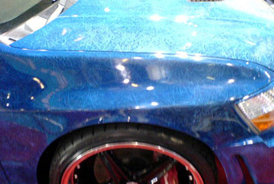 大家一定都見過很多從不同角度和光線折射會變色的車漆,但是我所拍回來的是從溫度的高低來變色的車漆!下面圖片藍色是最基本的溫度,變白是受熱影響。據改這臺車的的人員說,要改全車這樣車漆要2萬英鎊約合人民幣為30萬。太昂貴了!別想了還是看圖吧!