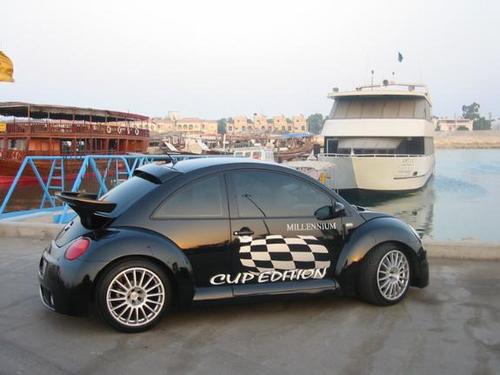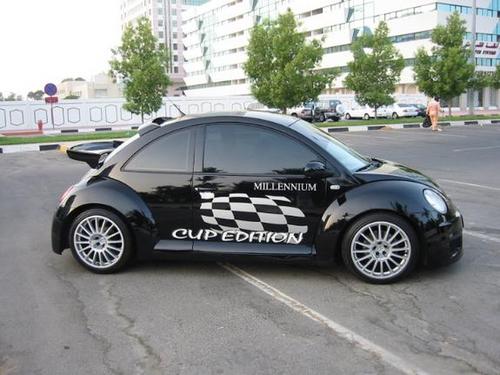 黑黝黝的身軀,圓溜溜的大眼睛,比賽專用的車身拉花的黑白格格,一看,甲殼蟲搖身變成了小烏龜,更加充滿了可愛,俏皮,還有一點放肆,如果擁有一輛這樣的汽車為伴,生活中的樂趣該會增加許多。不過,在甲殼蟲身上加上比賽專用的車身拉花,目的應該更深遠點的吧。難道要成為“蟲蟲賽車”?