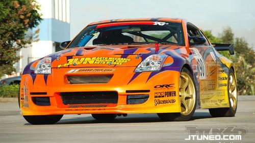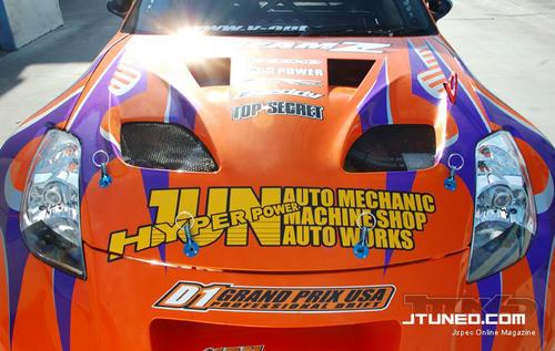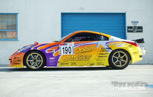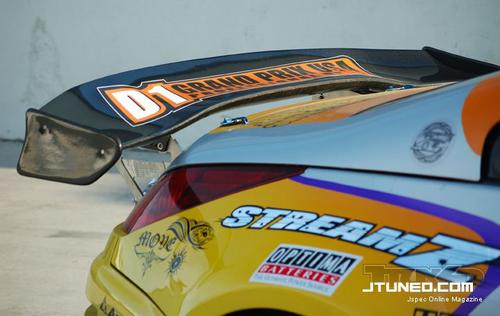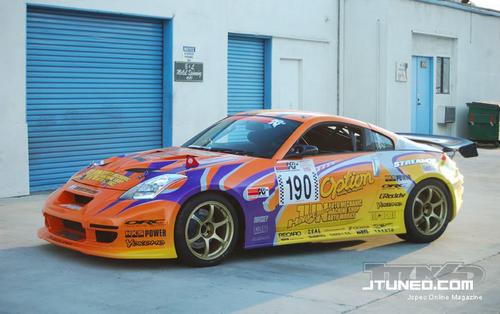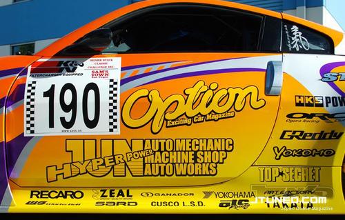 Option,JUN和Top Secret一手打造的極速Stream Z33。Single Greddy T88 38GK超大渦輪增壓,V-mount Greddy Intercooler,HKS F-con V Pro ECU,ORC離合器,Cusco LSD。 別的也不大清楚了,不過看看車后面背的“大包袱”,應該知道跑零四的話絕對不是開玩笑。
