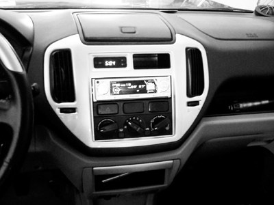 在這臺哈飛賽馬的音響改裝上,車上喇叭的安放制作是一個很大的亮點。技術人員選擇在A柱上開模制作高音喇叭位置,同時大膽地在儀表臺上開孔做中音喇叭位置,其目的主要把聲場拉寬拉遠。事實上,這一改裝做出來后產生的整體音響效果,讓參賽者得到C組冠軍,就證明技術人員的選擇沒錯。在超低音喇叭的安裝上,低音箱的制作花的時間較長,技術人員也下了很多工夫,如專門找帶羅帽的碼釘,整個箱體內涂環氧漆,得到的回報是一個15英寸的低音喇叭打出來的聲壓級是138DB。