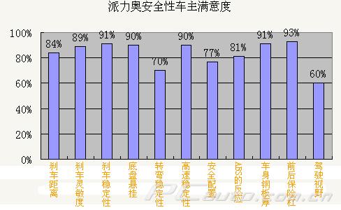 點(diǎn)評(píng):菲亞特素有“安全之王”的稱號(hào)。但似乎國內(nèi)車主對(duì)菲亞特車型并不太感冒。從調(diào)查的70位派力奧車主情況來看,車主對(duì)派力奧的安全性還是相當(dāng)滿意的。在轉(zhuǎn)彎的穩(wěn)定性以及駕駛視野兩項(xiàng)上雖然偏低,但正如車主所言:7W的小車能達(dá)到這個(gè)水準(zhǔn),已經(jīng)不錯(cuò)了。