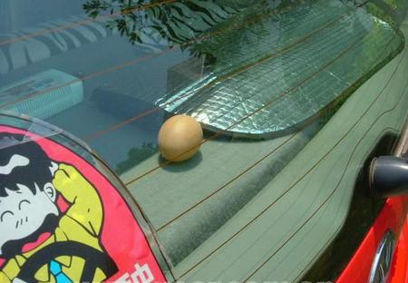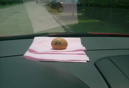 連續的高溫哈熱哈熱,有一次進車時拉保險帶,那個金屬頭把手給燙了一下,哇塞,真夠燙的。突然一念頭,把雞蛋放在車里曬一天熟不熟呢?嘿嘿,請聽分解。