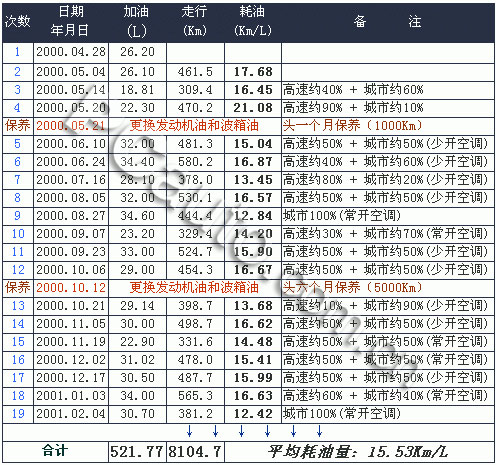 記憶猶新的網友可能記得,在PCauto的網站上也同樣有篇文章,是一位國內車主在使用一汽大眾寶來過程中的一個耗油全記錄(詳見《寶來1.8T車主15000km油耗全記錄:一年買油支出約5500元》)。筆者覺得這種做法很好,通過記錄每次加油和行走的路程,不僅可以幫助車主自身充分了解汽車的性能,也可以在這種記錄中發現各種問題,如:觀察到自己的愛車在每次加油后的耗油量越來越大,就應該考慮是否出了問題要對車進行檢查;又比如說可以觀察是否到了更換發動機油和波箱油的保養期;又或是是看車胎是否有點氣壓不足等等;順便還可以管理一下自己加油方面的財務支出,一舉多得呢。