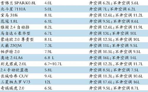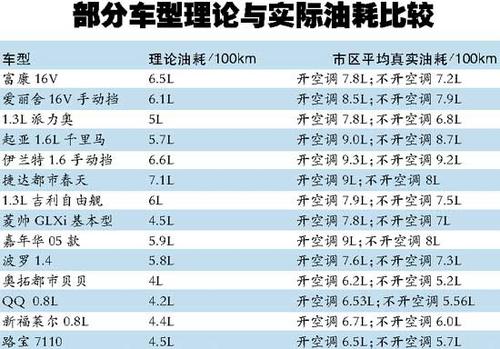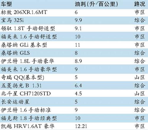市場(chǎng)上部分在用車型實(shí)際油耗參考