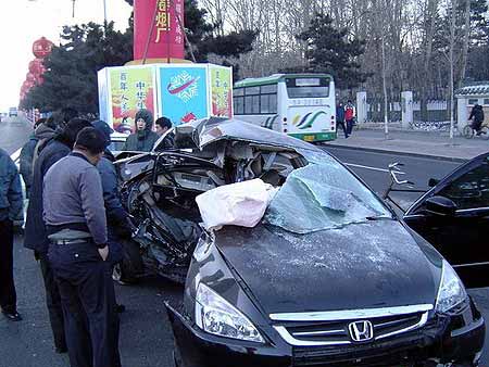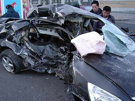 2005年1月8日在長春紫荊花飯店門口發(fā)生的車禍,該車被大眾捷達(dá)以不到50KM速度側(cè)面撞擊。圖形如下: