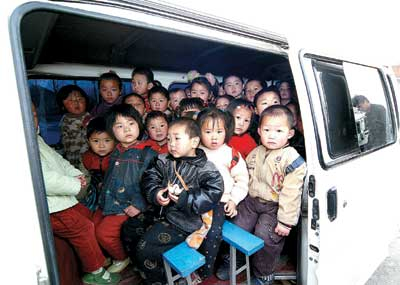 河南省許昌縣公安交警大隊(duì)民警在107國(guó)道許昌縣尚集鎮(zhèn)路段查獲一輛用于接送幼兒園學(xué)生的面包車,在這輛私自改裝的面包車內(nèi)擠著59個(gè)孩子,他們都是該縣大韓村一所民辦幼兒園的學(xué)生。據(jù)許昌縣交警部門(mén)介紹,當(dāng)?shù)卦S多民辦學(xué)校和幼兒園的校車都存在車況不好、超載、隨意停靠、開(kāi)快車等問(wèn)題。