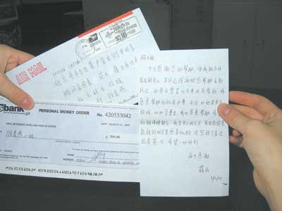 前天晚上,記者收到了一張來自美國的500美元匯款單,美籍華人蔣磊女士委托記者把匯款兌換成人民幣后轉交給5歲男孩玉兒的家人。蔣磊女士在信中寫道,她愿意長期幫助玉兒治病。“如果玉兒以后來北京看病,我愿意幫助他支付醫療費。如果他有其他困難,我也愿意幫助。”