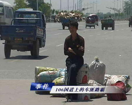 友情提醒要走106國道的各位司機朋友:據(jù)反應(yīng),106國道上敲詐司機、倒客甩客、敲詐勒索的現(xiàn)象已經(jīng)存在很長時間了。 從北京到廣州的106國道,從北到南貫通了整個河北省,是河北省境內(nèi)幾十個縣市往來北京的交通要道,然而就是在這條重要的國道上,記者卻在河北省境內(nèi)目睹了車匪路霸猖獗橫行的現(xiàn)象。 106國道從北京往南在河北省境內(nèi)先后要穿越固安、霸州、任丘等十幾個縣市,也是從北京到滄州、吳橋、德州等地的客運車輛通常要途經(jīng)的主要道路。