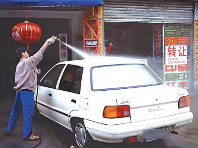 記得數年前在外地的一個城市出差,當時住的酒店旁邊有一家機器自動洗車帶打蠟的洗車店,在那里把灑家的藍鳥王洗過一遍,雖然感覺不出20元洗出來的車子跟平常5元洗出來的有多大差別,但是從節省時間方面來說確實有可取之處。可惜象灑家這樣的散淡之人并沒有大富豪或者政治家那樣節約時間的概念,所以覺得手工洗車雖然多耗點時間,但這時間既不影響思考,又省錢,其實更適合自己。 昨晚和今天早上聽幾個車友說灑家的某個辦公室附近200余米處新開的一家洗車店正在試營業,這兩天免費洗車,上午經過時雖然想到自己的車其實還很干凈,而且聽天氣預報明天又要下雨,但由于心里那點不洗白不洗的占便宜心理作怪,加上今天又是咱家大陸風滿月之日,所以方向盤一打,還是繞進去了。