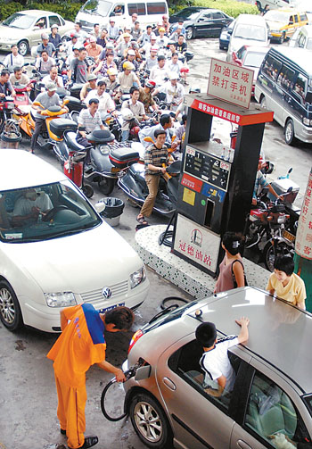 序“俺的油箱到13號(hào)晚上還剩半箱油,本來(lái)是沒(méi)有什么問(wèn)題的,不過(guò),星期六一大清早要送父母去廣州白云機(jī)場(chǎng),所以,得提前把油加滿比較好。于是那天晚上轉(zhuǎn)了東莞的幾個(gè)加油站,都說(shuō)沒(méi)油!有一個(gè)油站倒是有油,不過(guò),排的兩條車龍超過(guò)了2公里!估計(jì)輪到我的時(shí)候也沒(méi)了!”天啊,這叫我怎么辦…… >>> 查看車主敘述親身經(jīng)歷全文 <<< 近日來(lái),廣東各地紛紛鬧“油荒”,這場(chǎng)“災(zāi)難”讓眾多車主措手不及。 來(lái)自深圳的消息稱:14日早上,記者也曾經(jīng)走訪了深圳各區(qū)的多家油站,發(fā)現(xiàn)頭一天晚上已經(jīng)“賣(mài)光光”的油站,都已正常營(yíng)業(yè)。但是一度充裕的90號(hào)汽油再度缺貨,多個(gè)油站內(nèi)只有97號(hào)。在南山和福田的多個(gè)油站,都能目睹到加油車輛排隊(duì)排到馬路上的情景。“今天只能加97號(hào)。”油站紛紛派出工作人員到隊(duì)尾向司機(jī)說(shuō)明情況…… >>> 查看深圳地區(qū)的“油荒”報(bào)道全文 <<< 下面來(lái)看一組圖片: