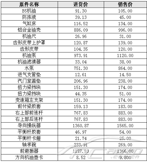 行內人都知道,在國內維修保養帕薩特,維修店的利潤可高達40%左右。根據上表所提供的數據顯示,進貨價和零售價的差距似乎不大,利潤空間從何而來?僅僅靠額外的工時費賺取?這絕對是不可能的事情。當然,我們完全有理由相信由福建某維修店公開提供的這份維修配件價格有一定的“水分”在里面。畢竟按照表中的價格差距,維持店面的基本生存都有問題。