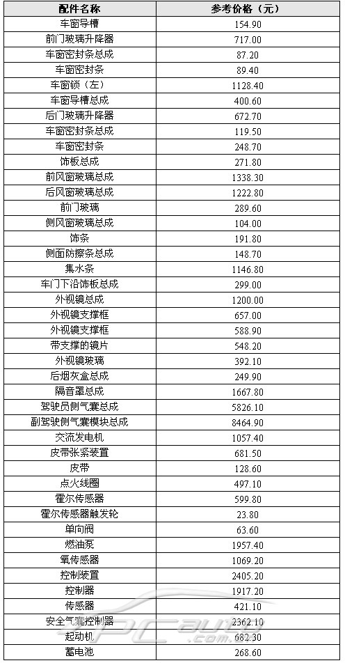 下面提供帕薩特車型其他零配件的價格: