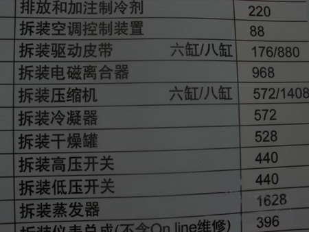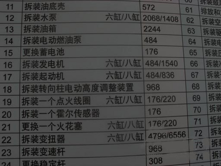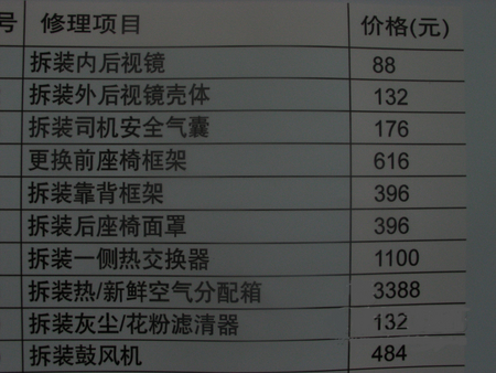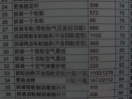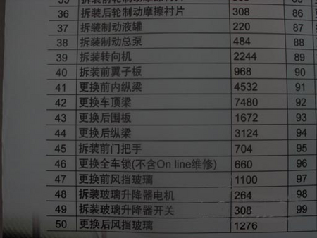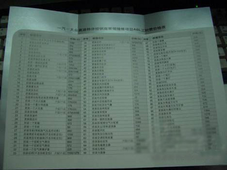 這張圖中可以看到“一汽大眾奧迪特許經(jīng)銷(xiāo)商常規(guī)維修項(xiàng)目A6L工時(shí)費(fèi)價(jià)格表”的表頭,下面接著看具體價(jià)格:
